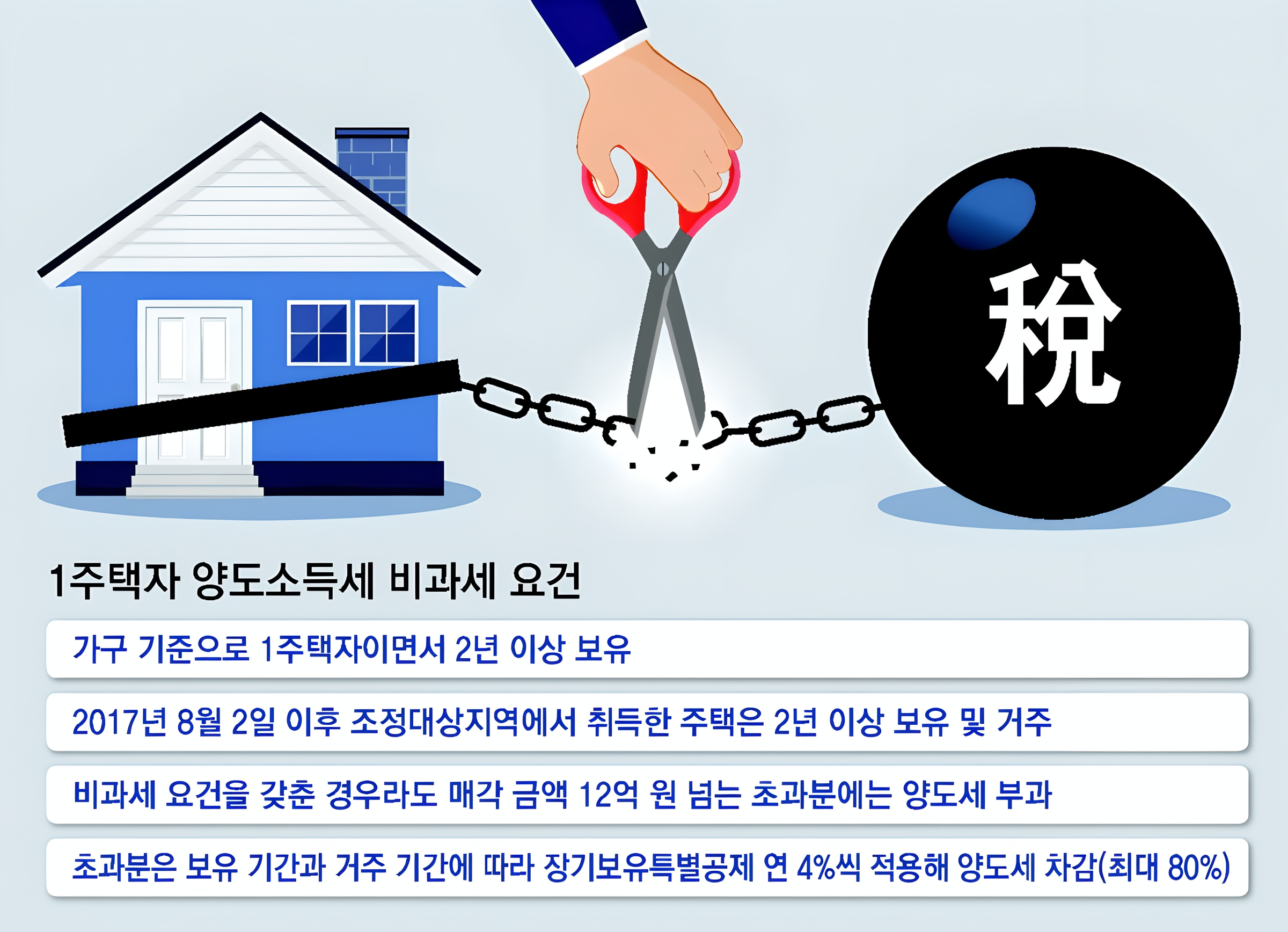 - 1세대 1주택 비과세 요건: 1세대 1주택 비과세 요건을 충족하려면, 주택을 2년 이상 보유하고, 거주 요건을 충족해야 합니다. 또한, 주택 매각 후 일정 금액 이하의 소득에 대해서만 비과세 혜택을 받을 수 있습니다.