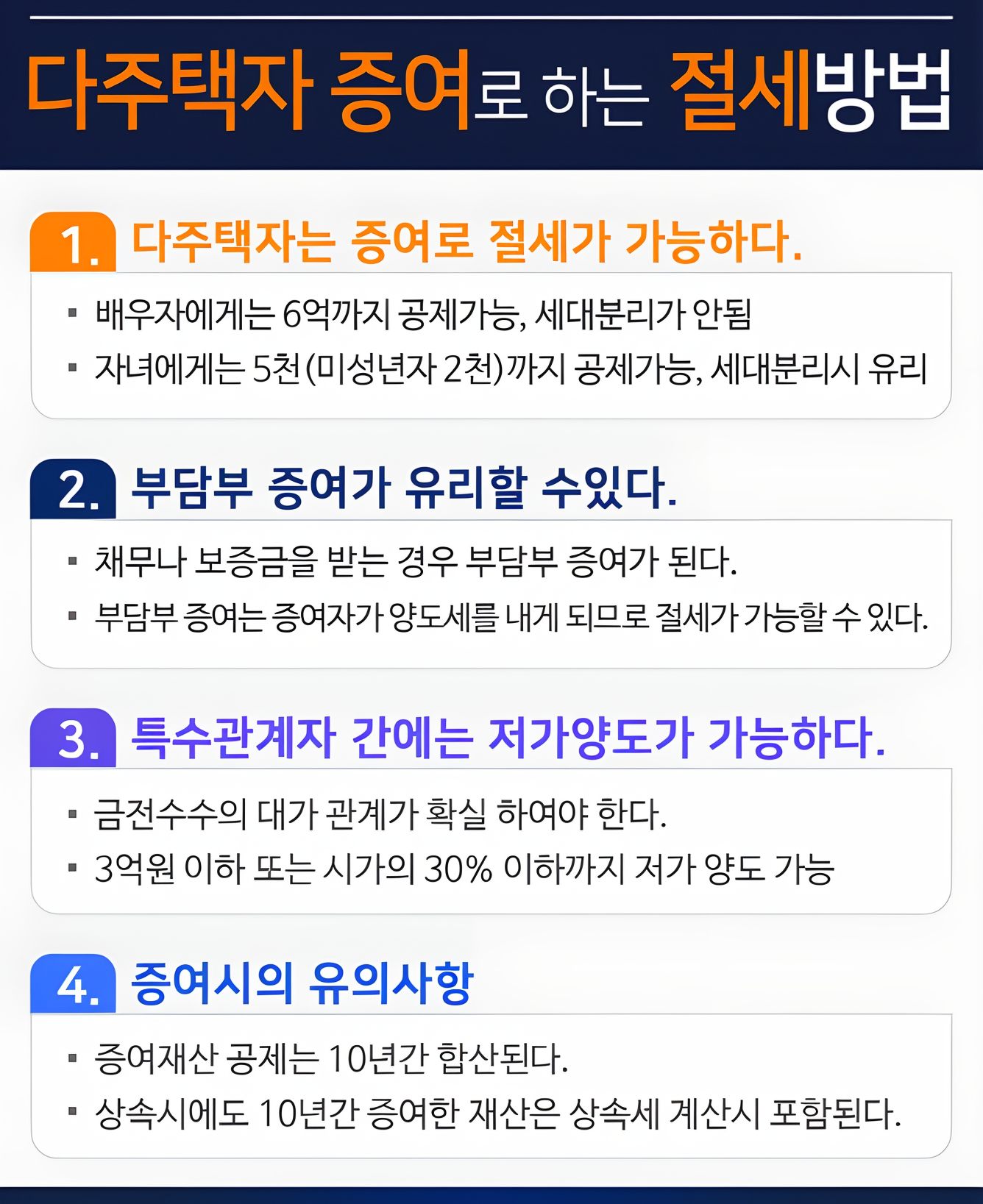 - 1세대 1주택 비과세 활용: 1세대 1주택 비과세 요건을 충족하면 양도소득세를 면제받을 수 있습니다. 따라서, 다주택자가 부동산을 매각할 때는 먼저 1세대 1주택 요건을 충족시키고 매각하는 것이 유리할 수 있습니다.